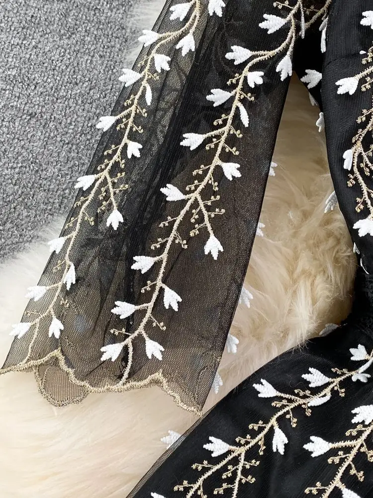 Black Dress Embroidery Flowers Black Dress Floral Embroidery High Quality Aliexpress