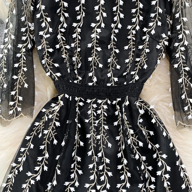 Flower Embroidery Dress Black White Women Dress Mesh Black Embroidery Fashion Aliexpress