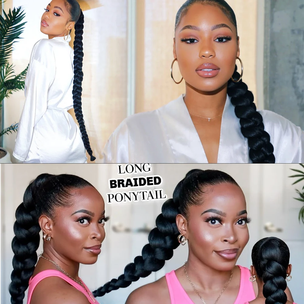 85 Cm Ponytail Extension Braid Extensions Ponytail Extension Black Hair Long Ponytail Braided Synthetic Hair Extension Hair Extension Hair For Braiding Ponytail Hairpiece For Women Black Amazon De Beauty